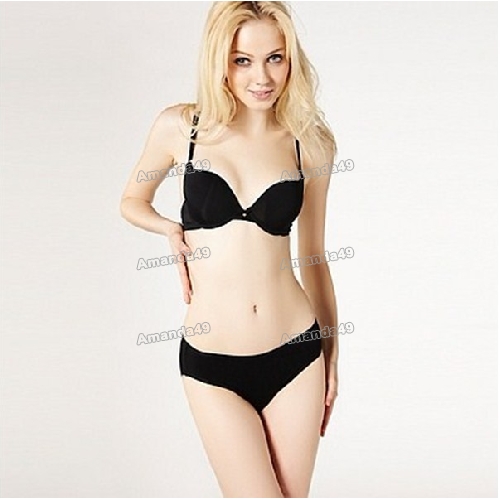 3 / 4 Cup Black Seamless Steel Ring Padded Detachable Shoulder Strap Bras |