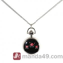 Amanda49 Antique Style Beautiful Flowers Pattern Pocket Watch with Mirror and Chain Belt (Black) |