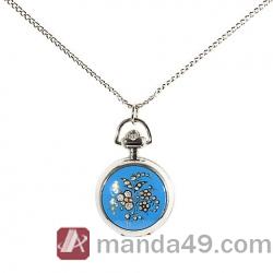 Amanda49 Antique Style Beautiful Flowers Pattern Pocket Watch with Mirror and Chain Belt (Medium Blue) |