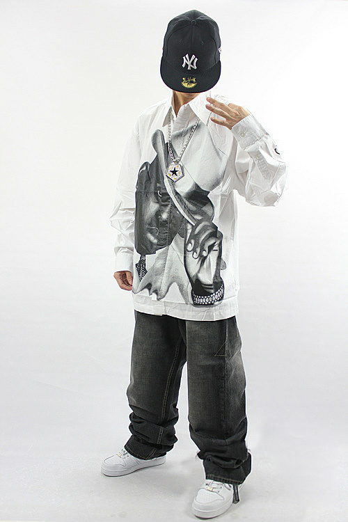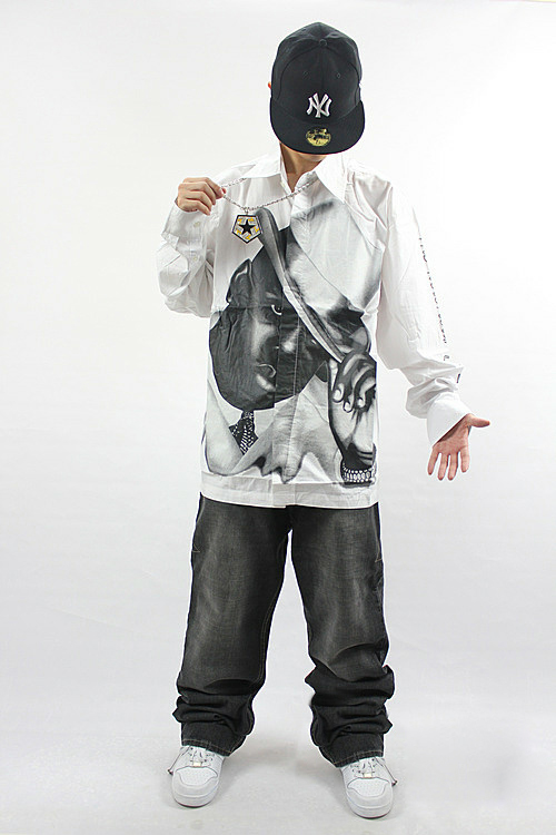 Amanda49 Autumn and Winter Fashion Hip Hop Style Character Design Turndown Collar Long Sleeve Shirt |