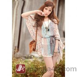 Amanda49 Beautiful Lace Neckline Design Chiffon Shirt--Women's Dresses |