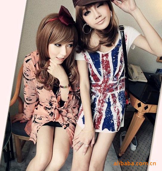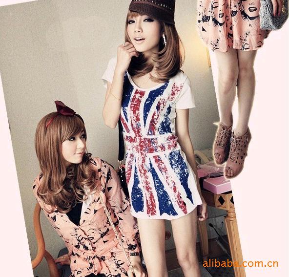 Amanda49 British Flag Design Elastic Cotton Short Sleeve Blouse--Women's Blouses |