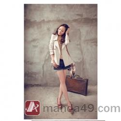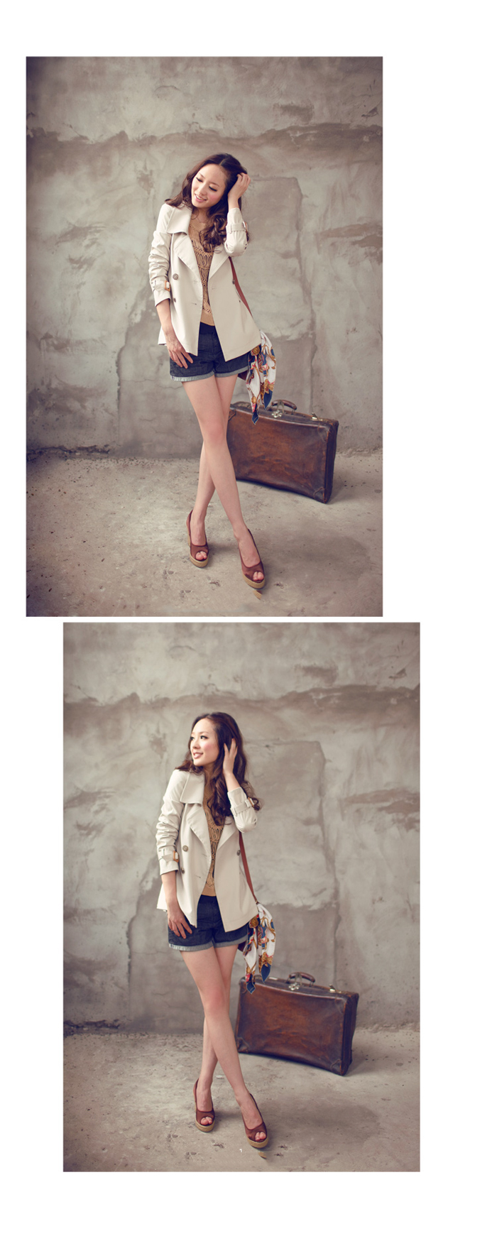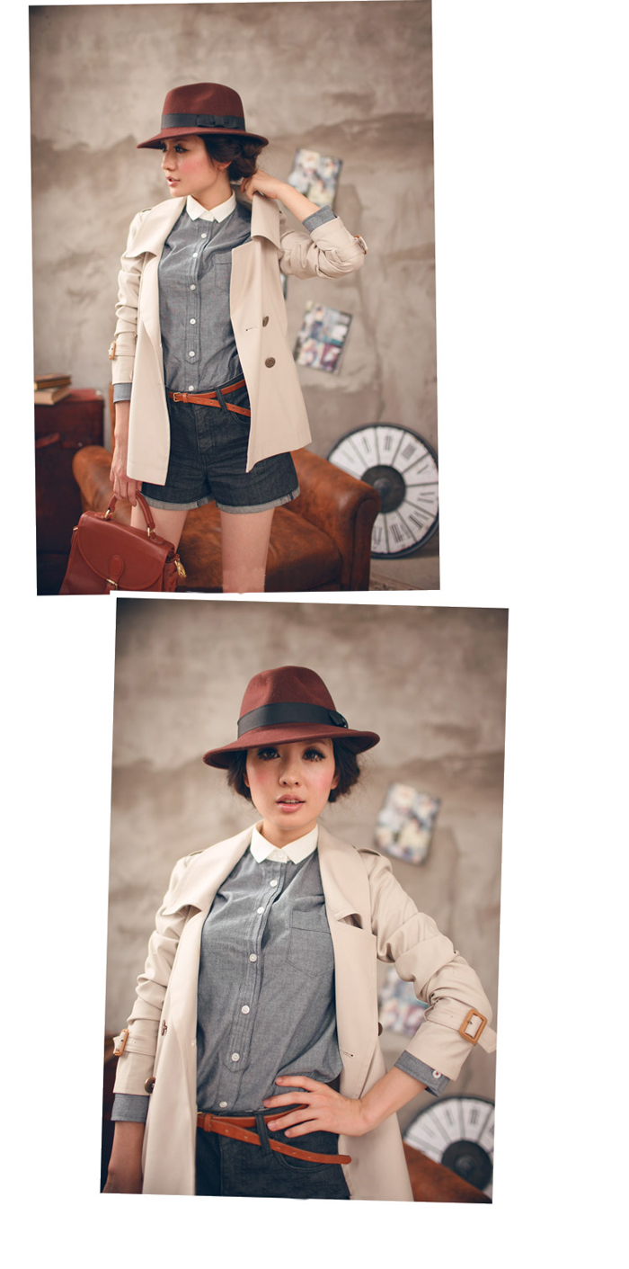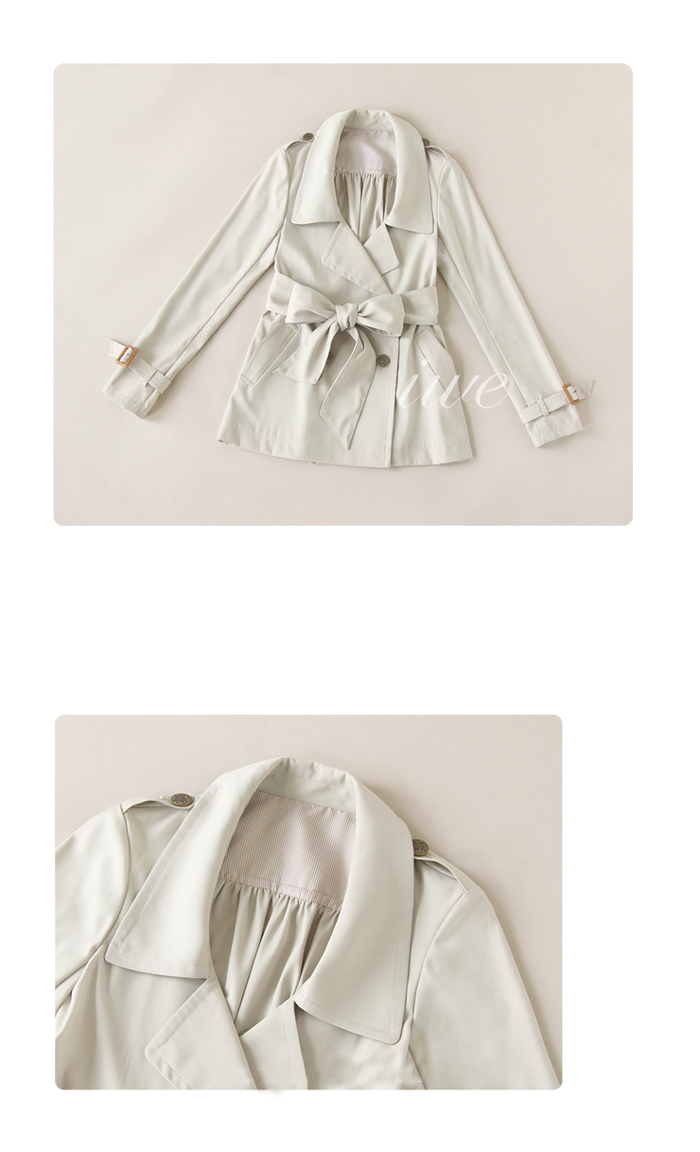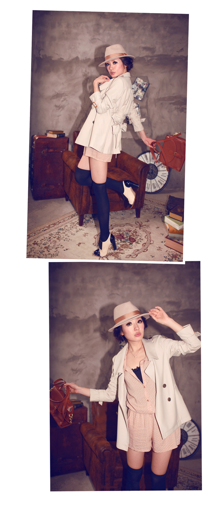 Amanda49 British Style Lapel Double-Breasted Frills Long Sleeves Cotton Coat For Women |