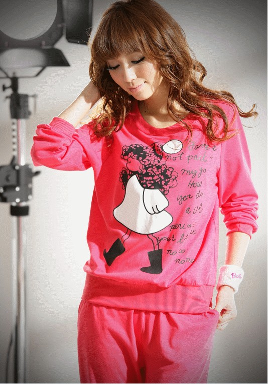 Amanda49 Casual and Simple Style Cartoon Pattern Loose Long Sleeve Suit |