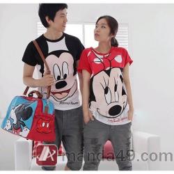 Amanda49 Casual and Sweet Round Neckline Patterns Short Sleeves Cotton Couple T-Shirt For Lovers |