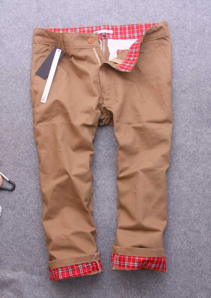 Amanda49 Casual Red Grid Hem Nine Minutes of Pants For Men |
