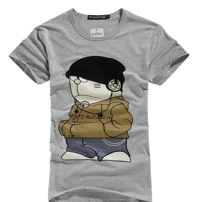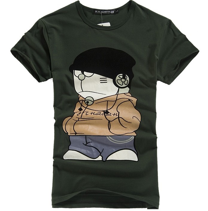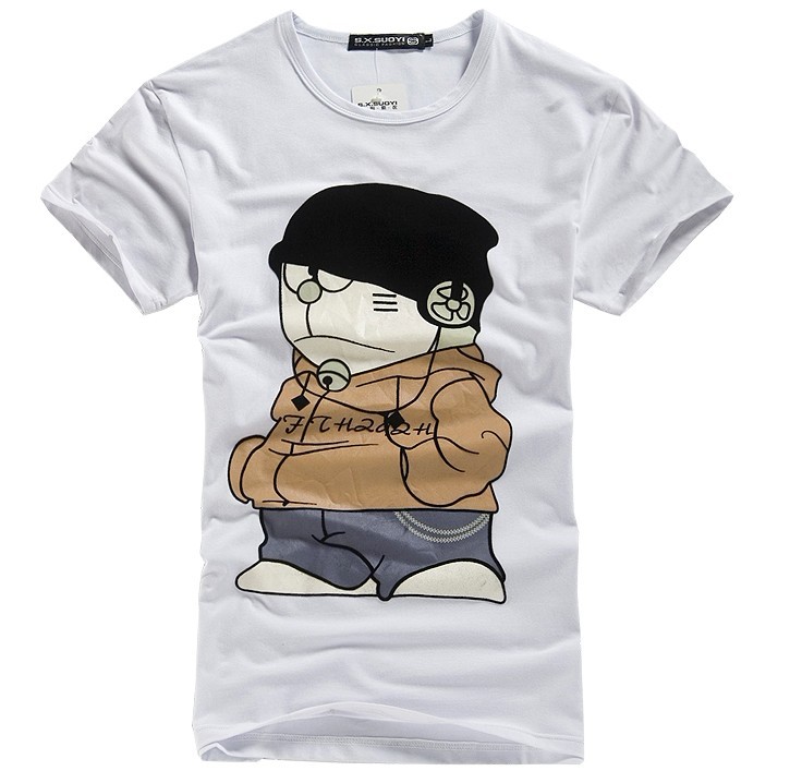 Amanda49 Casual Round Neckline Cartoon Printed White Sleeves Cotton Fabric T-Shirt For Men |