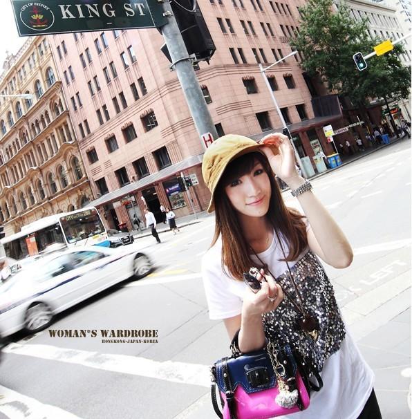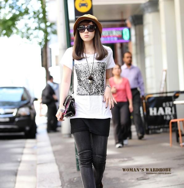 Amanda49 Casual Round Neckline Flash Cards Embellished Short Sleeves Blouse For Women |