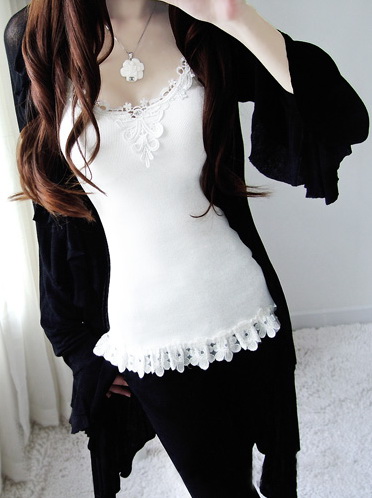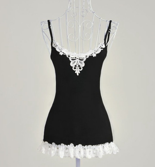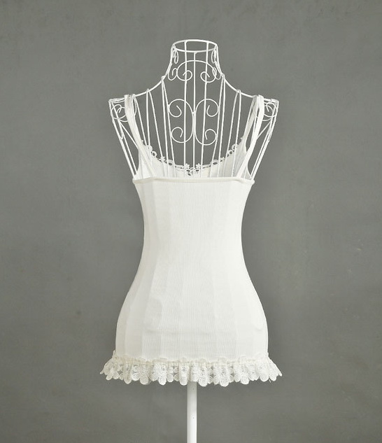 Amanda49 Charming and Sexy Deep Round Neckline Lace Hem Cotton Vest For Women |