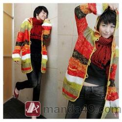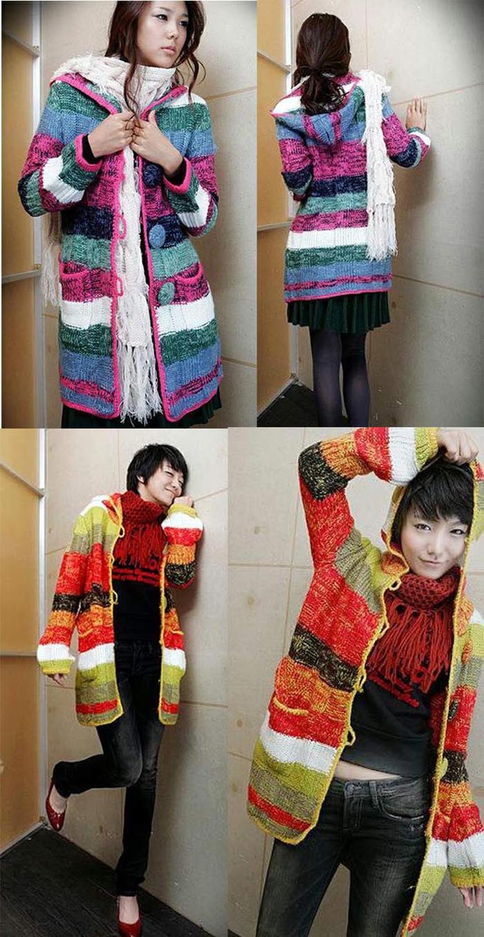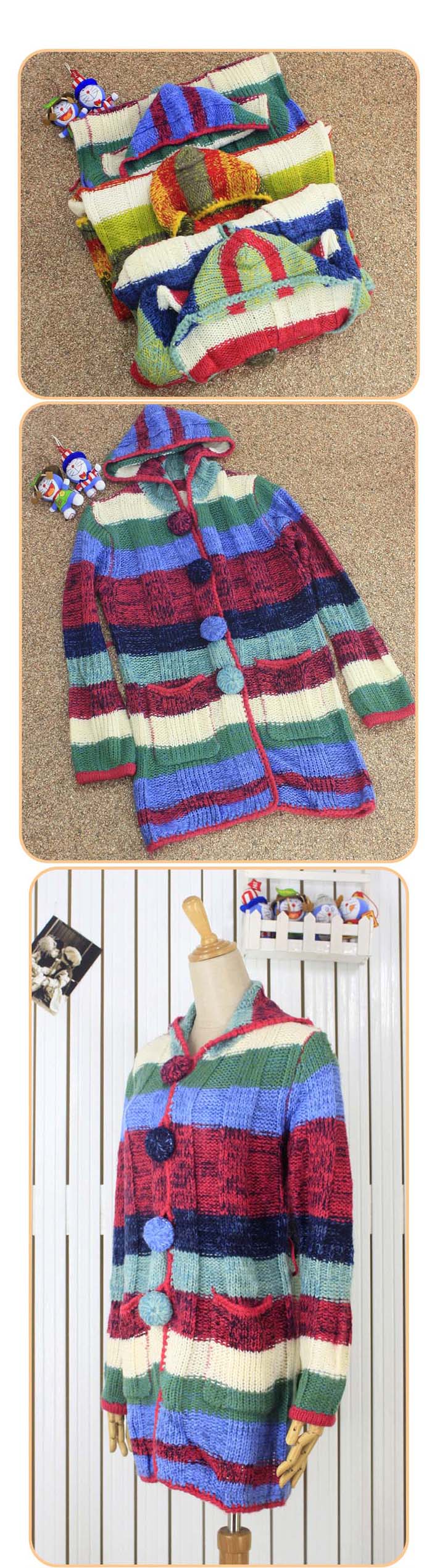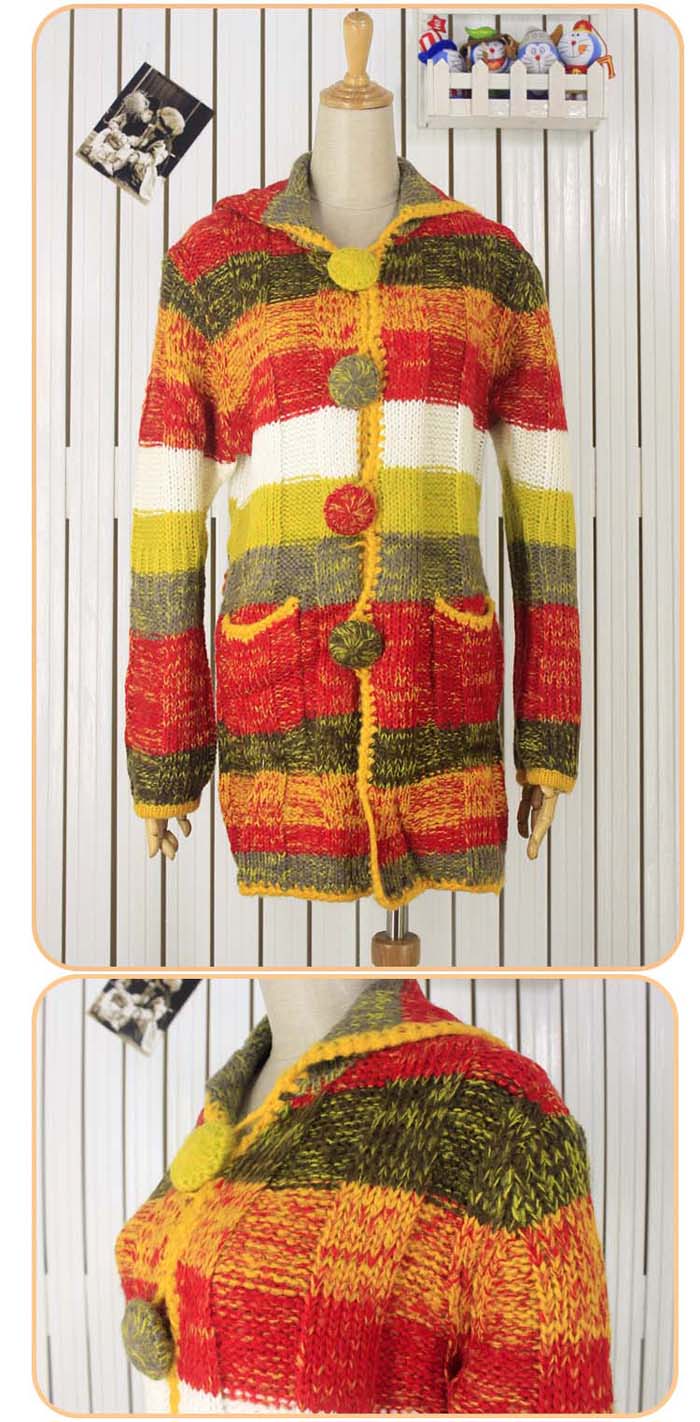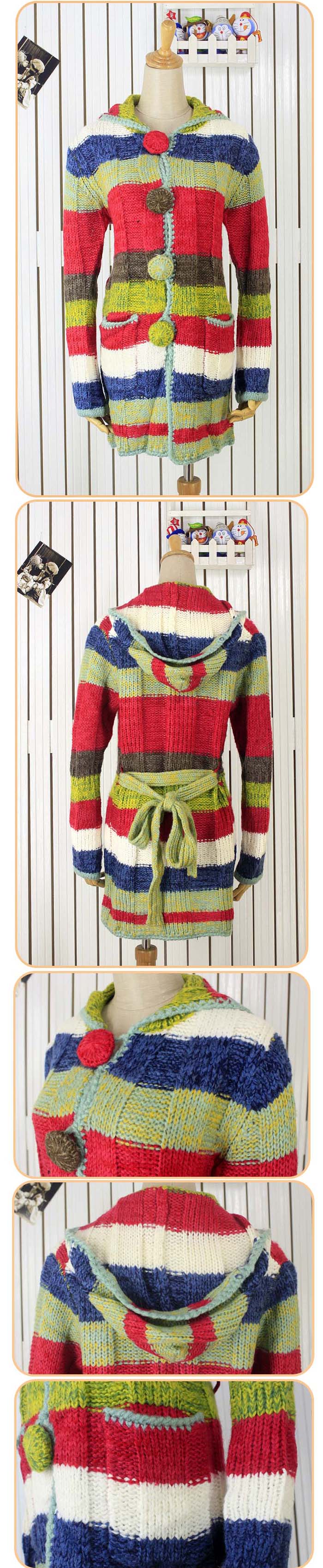 Amanda49 Charming Colorful Stripes Special Button Double Pocket Long Sleeves Coat For Women |
