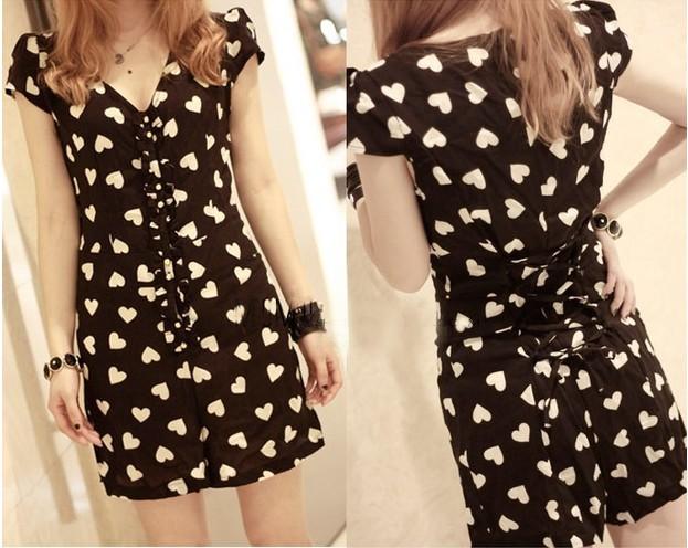 Amanda49 Charming Deep V-Neck Black Puff Sleeves Elastic Cotton Jumpsuits For Women |