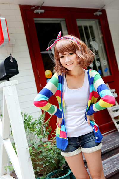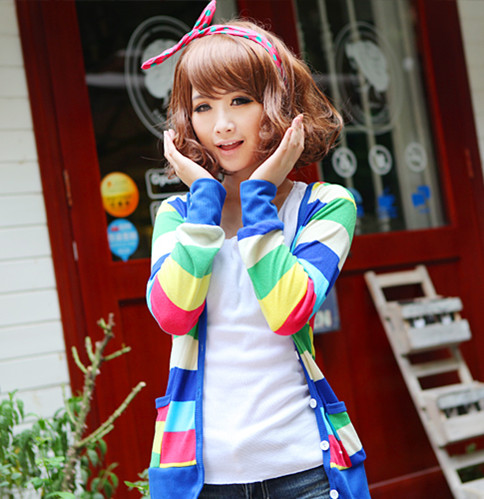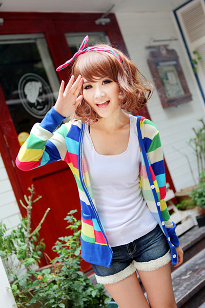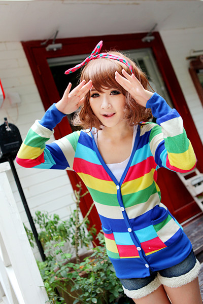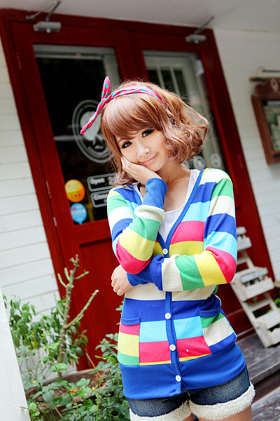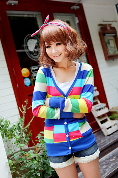 Amanda49 Charming Mix Match Deep V-Neck Chromatic Colour Grid Single-Breasted Long Sleeves Coat For Women |
