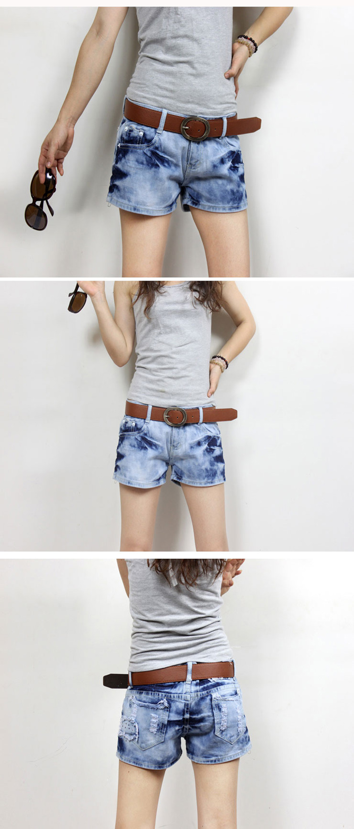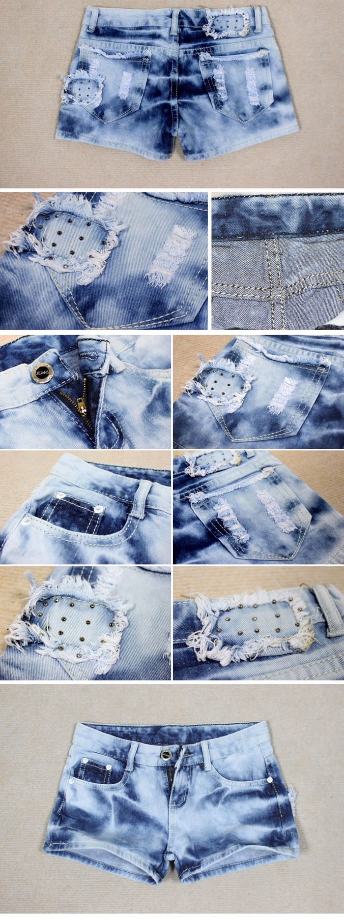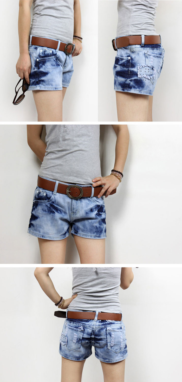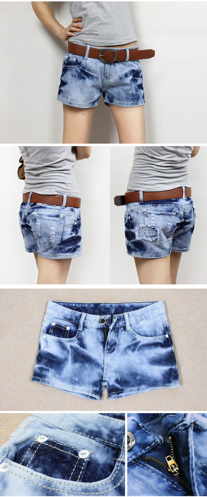 Amanda49 Charming Mix Match Patch Embellished Scratch Light Blue Short Jeans For Women |