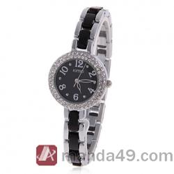 Amanda49 Chic 451 Rhinestone Decoration Stainless Steel Wrist Watch w/ 2/4/6/8/10/12 Hour Marks for Women - Black |