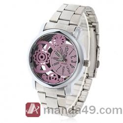 Amanda49 Chic A1333 Round Pink Dial Waterproof Stainless Steel Wrist Watch with Numerals Hour Marks for Women - White |
