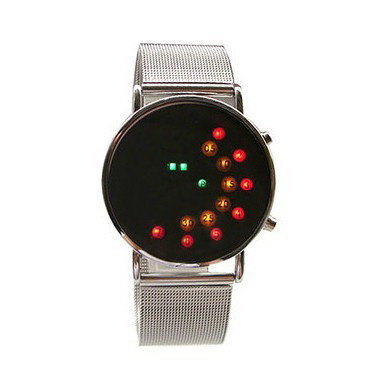 Amanda49 Chic Feminine Round Case Stainless Steel Bangle Wrist Watch with Red Light - Silver |