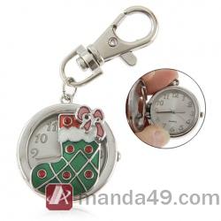 Amanda49 Chic Round Dial Pocket Wrist Watch with Christmas Sock Patterned and Keychain - Silver |