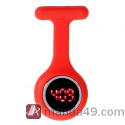 Amanda49 Chic Round Mirror Red Digital LED Watch Light Fob Nurse Watch with Pin - Red |
