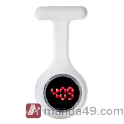 Amanda49 Chic Round Mirror Red Digital LED Watch Light Fob Nurse Watch with Pin - White |
