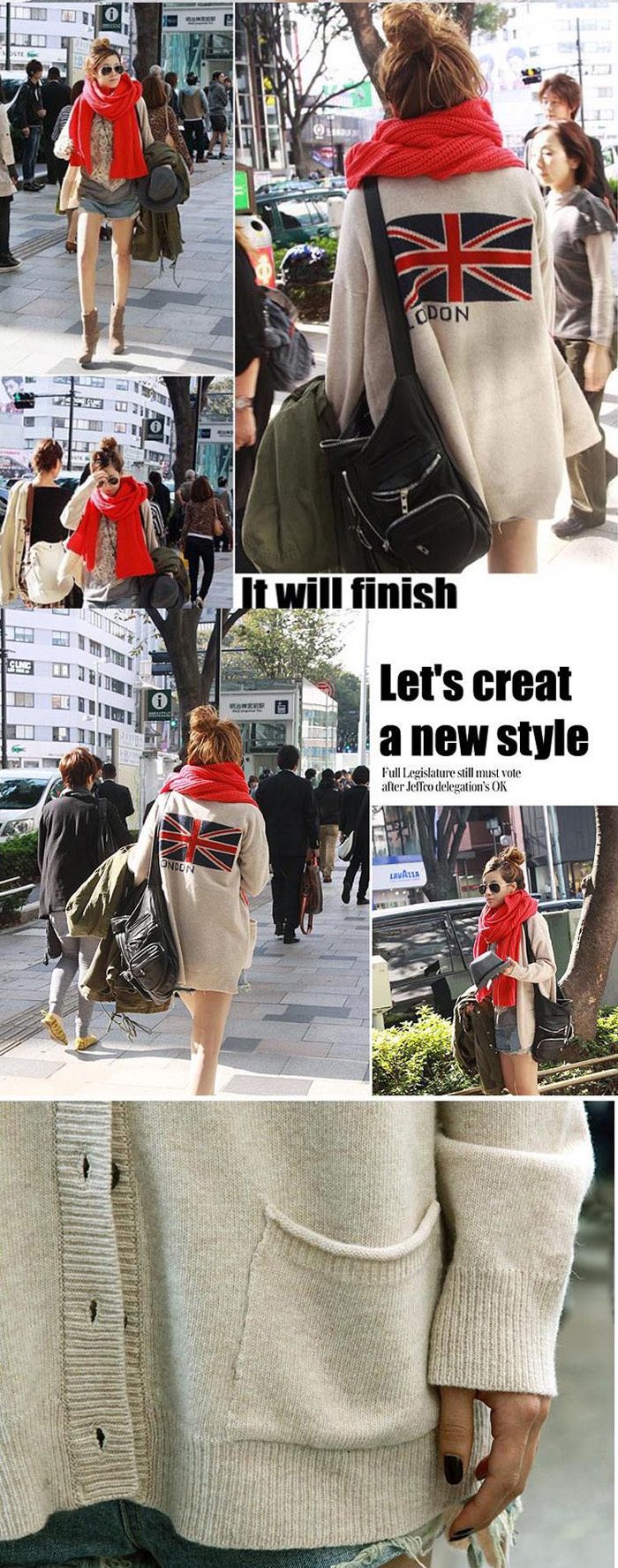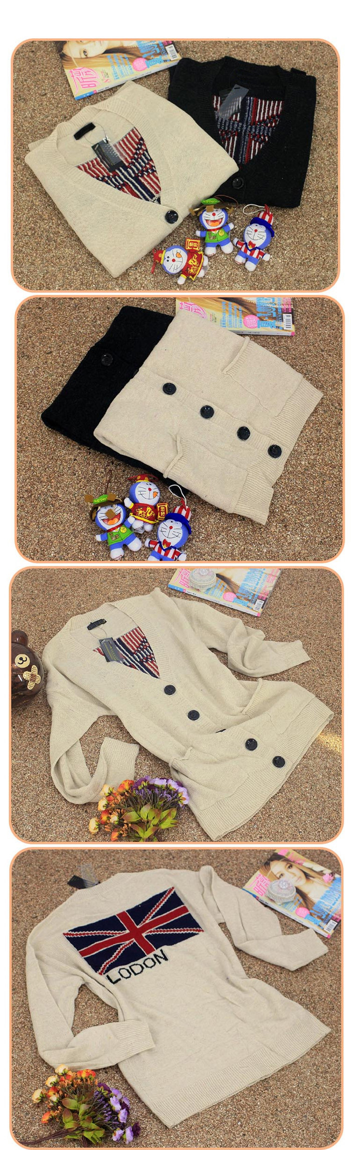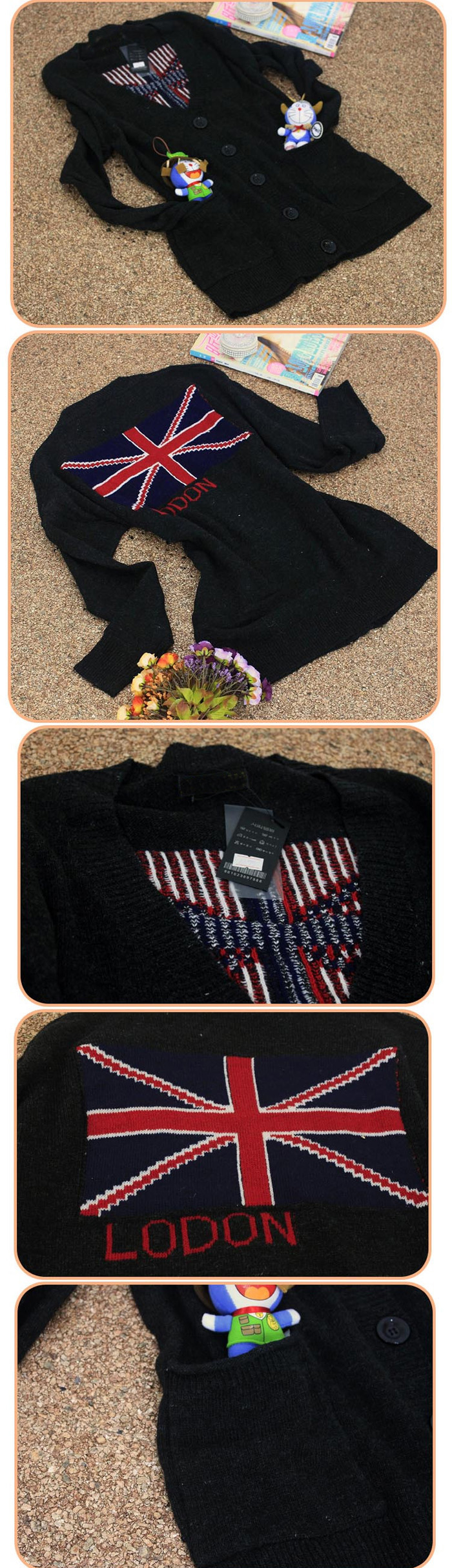 Amanda49 Classic Deep V-Neck Double Pockets Single-Breasted American Flag Patterns Back Decorated Long Sleeves Coat For Women |