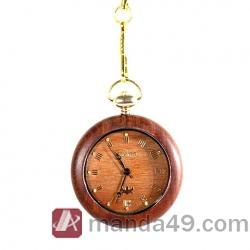 Amanda49 Classical Wooden Design Pocket Watch with Golden Chain Belt |