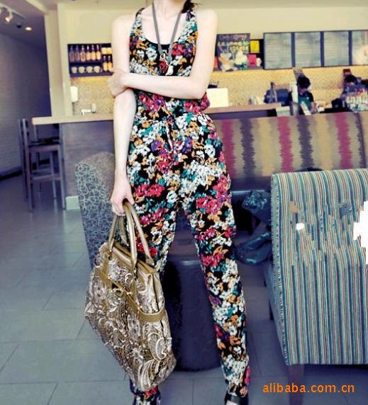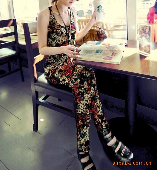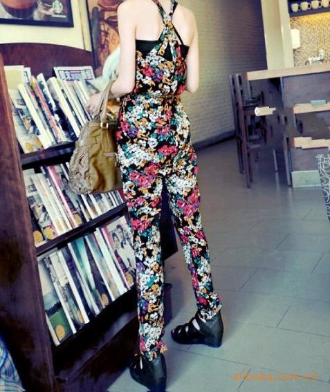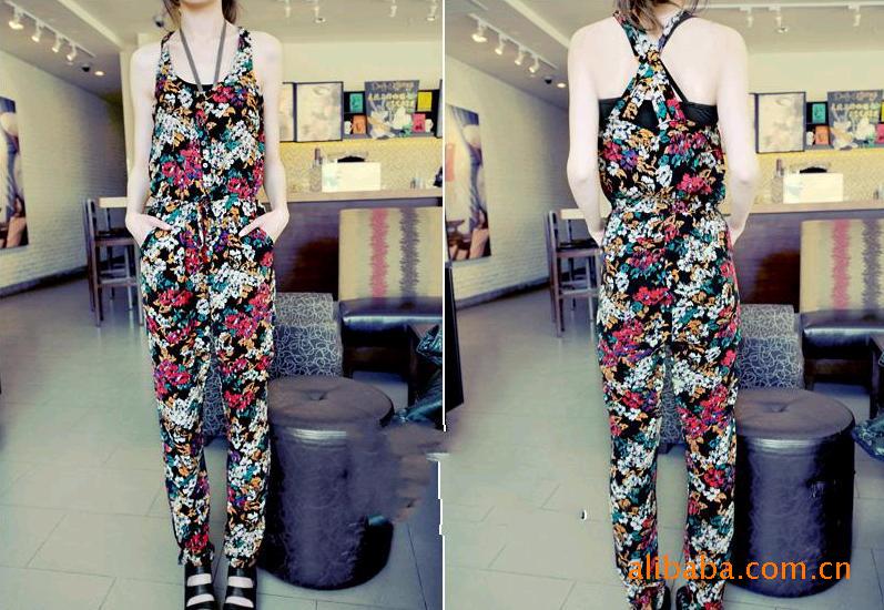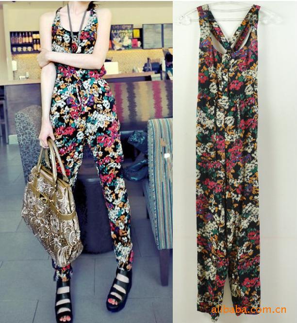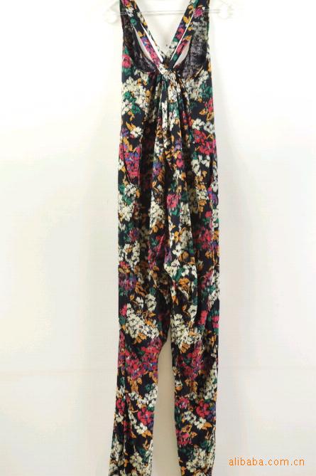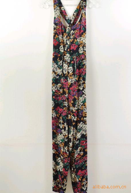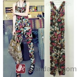 Amanda49 Colorful Floral Patterns Round Neckline Sleeveless Jumpsuit |
