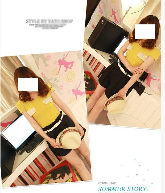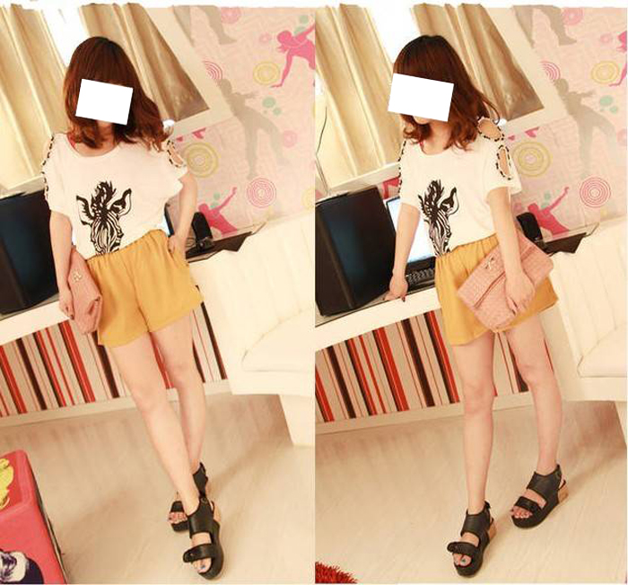 Amanda49 Colorful Summer Elastic Waist Pants With Belt |
