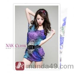 Amanda49 Colourful Polyester Short Sleeve Dresses with Belt Blue--Women's Dresses |