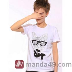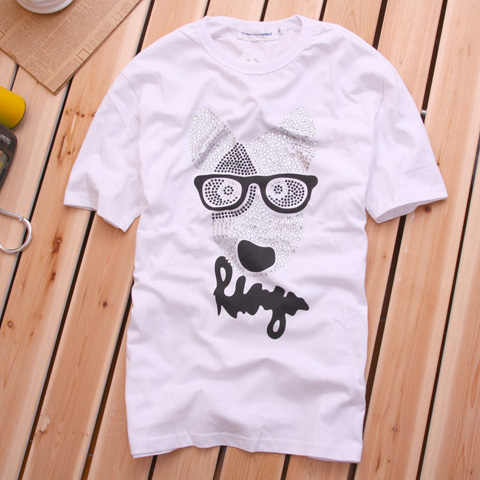 Amanda49 Comedy Round Neckline Dog Embellished White Sleeves Cotton T-Shirt For Men |