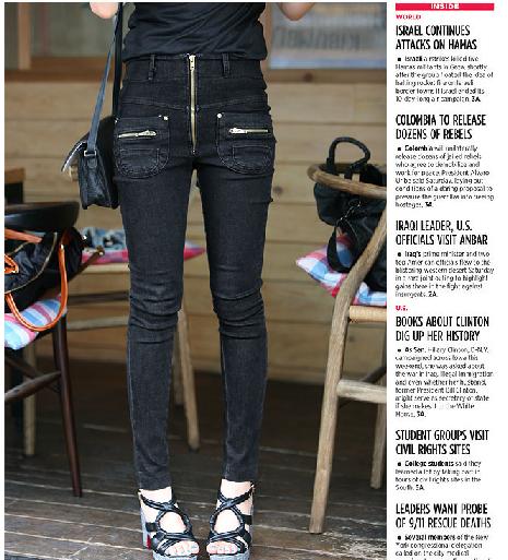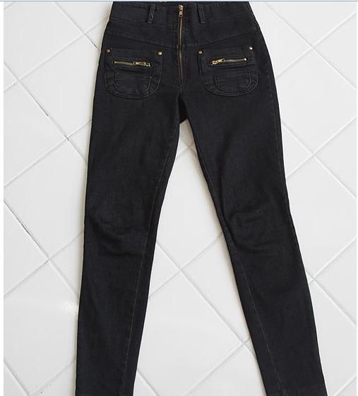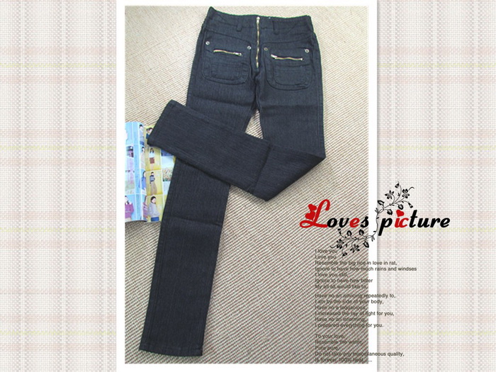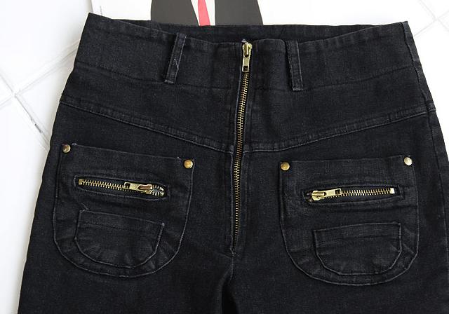 Amanda49 Comfortable and Elegant Special Pocket Design Rivets Embellished Black Feet Jeans For Women |
