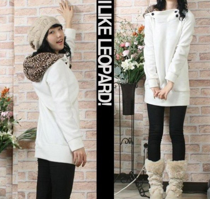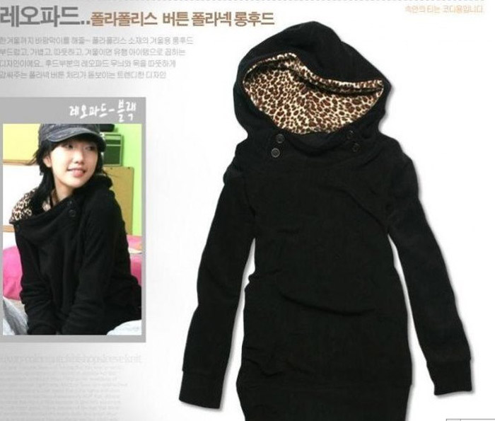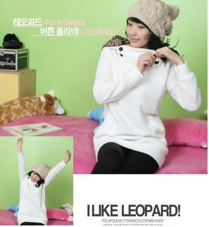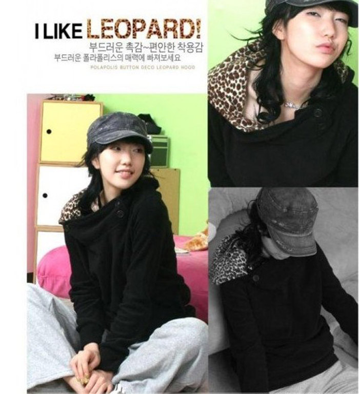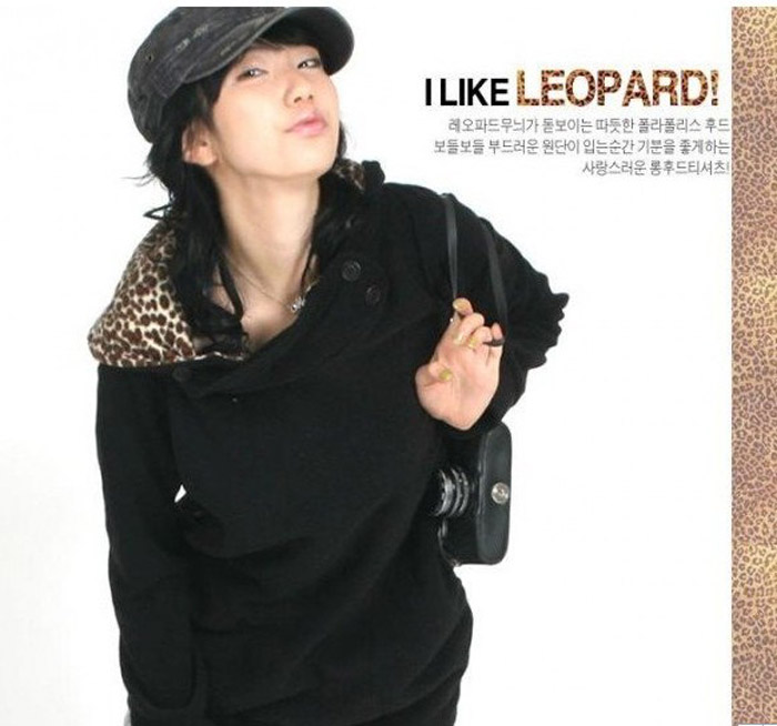 Amanda49 Comfortable and Simple Hot Sales Leopard Long Sleeves Hood Blouse For Women |