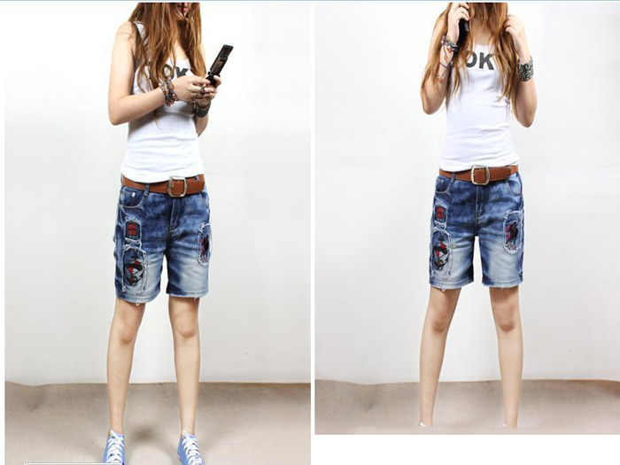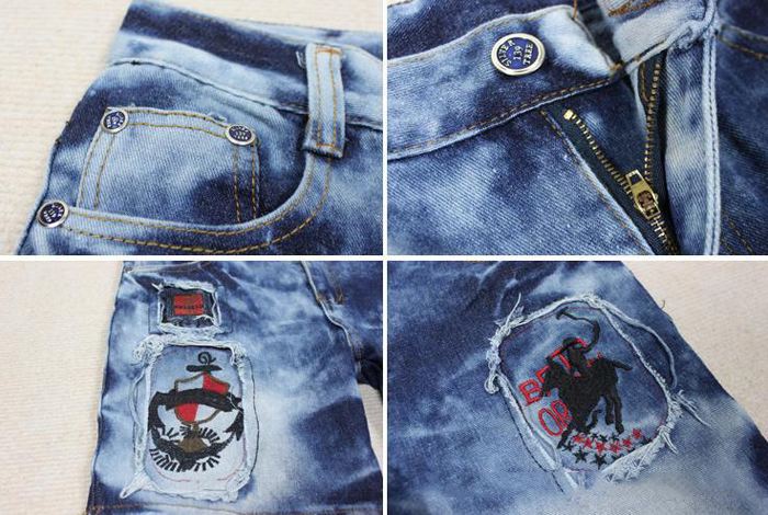 Amanda49 Comfortable Retro Patterns Design Mix-Matched Jeans |