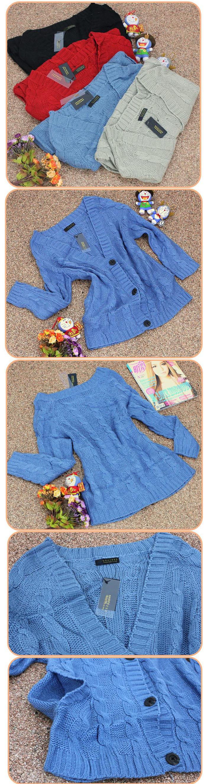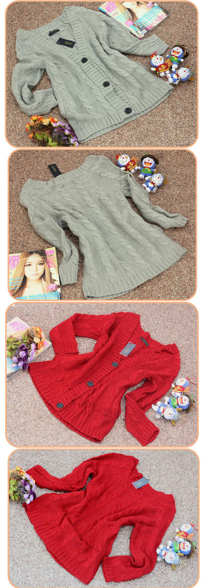 Amanda49 Concise and Classic Deep V-Neck Flax Patterns Long Sleeves Wool Blended Coat For Women |