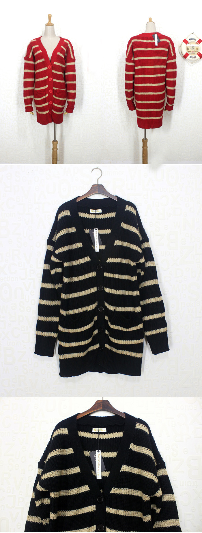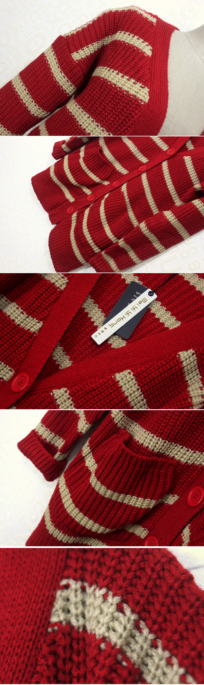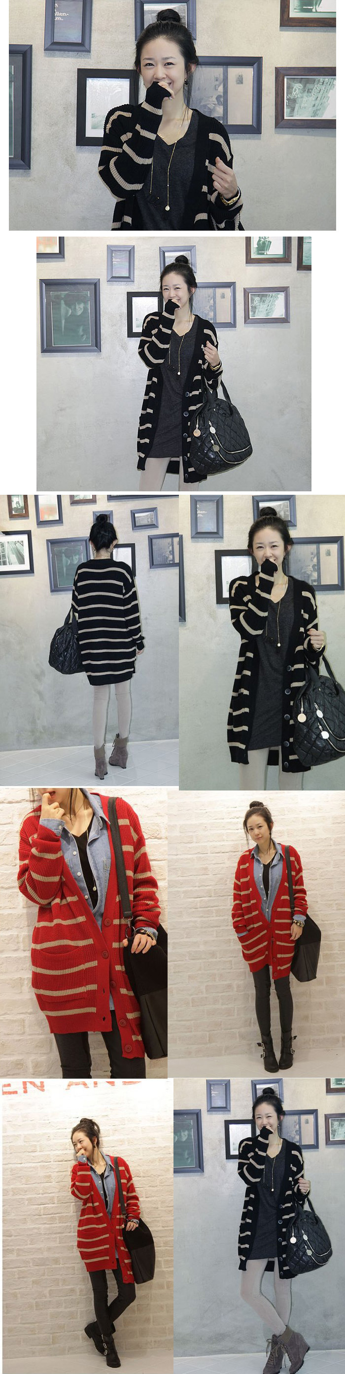 Amanda49 Concise and Leisure Deep V-Neck Single-Breasted Stripes Long Sleeves Acrylic Coat For Women |