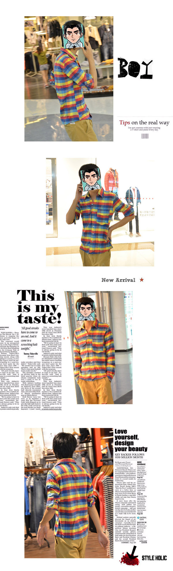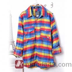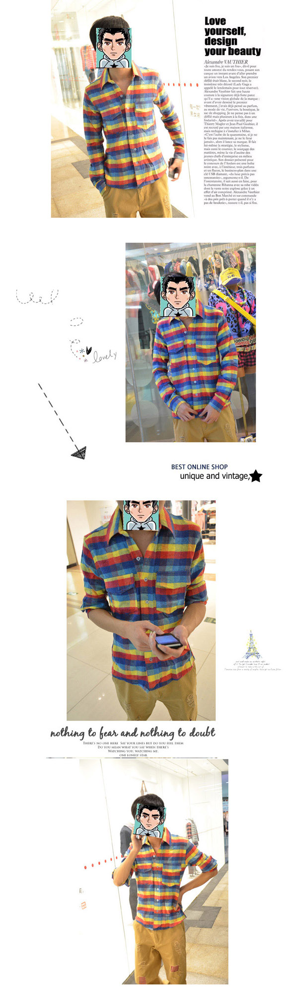 Amanda49 Concise Lapel Double-Pocket Grid Style Chromatic Colour Long Sleeves Shirt For Men |
