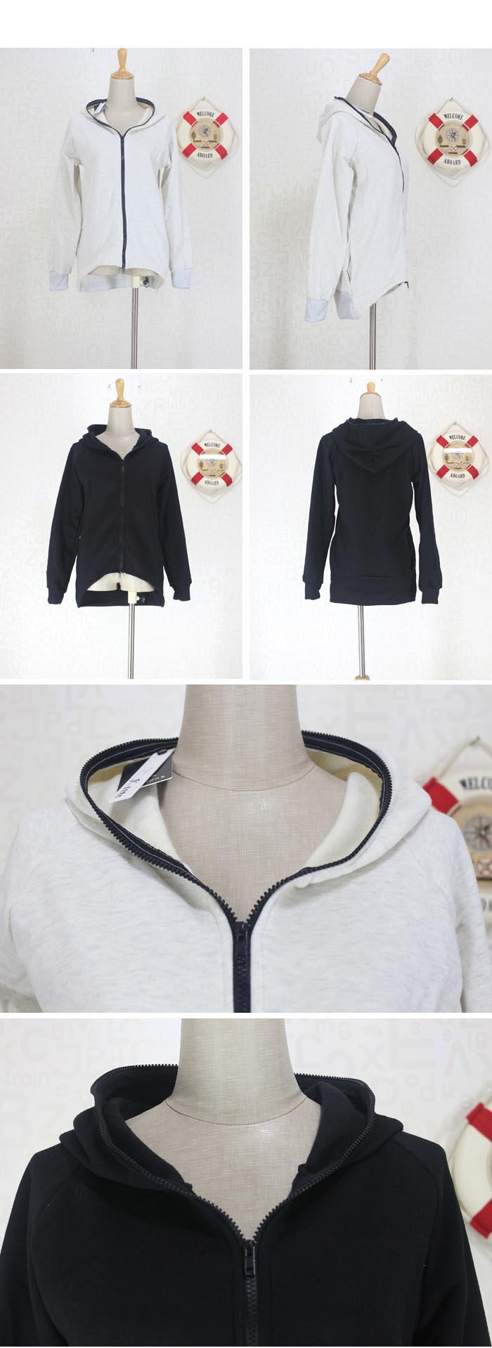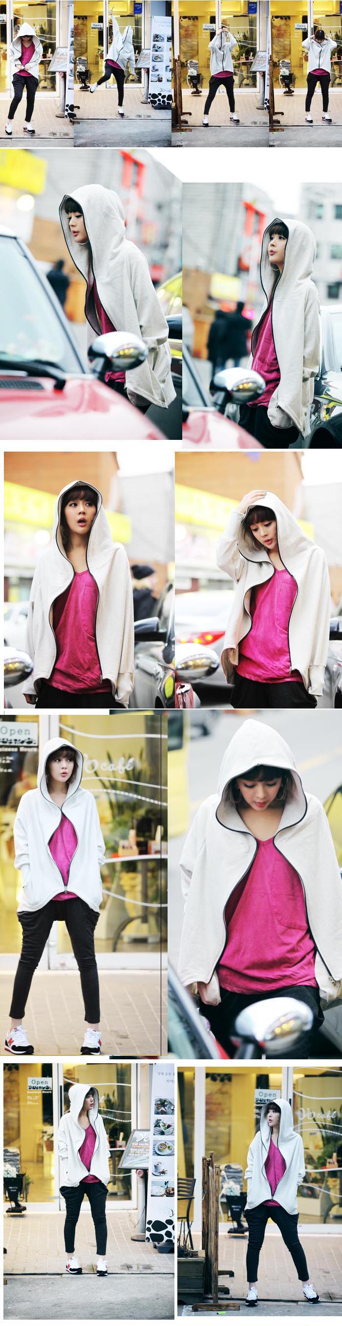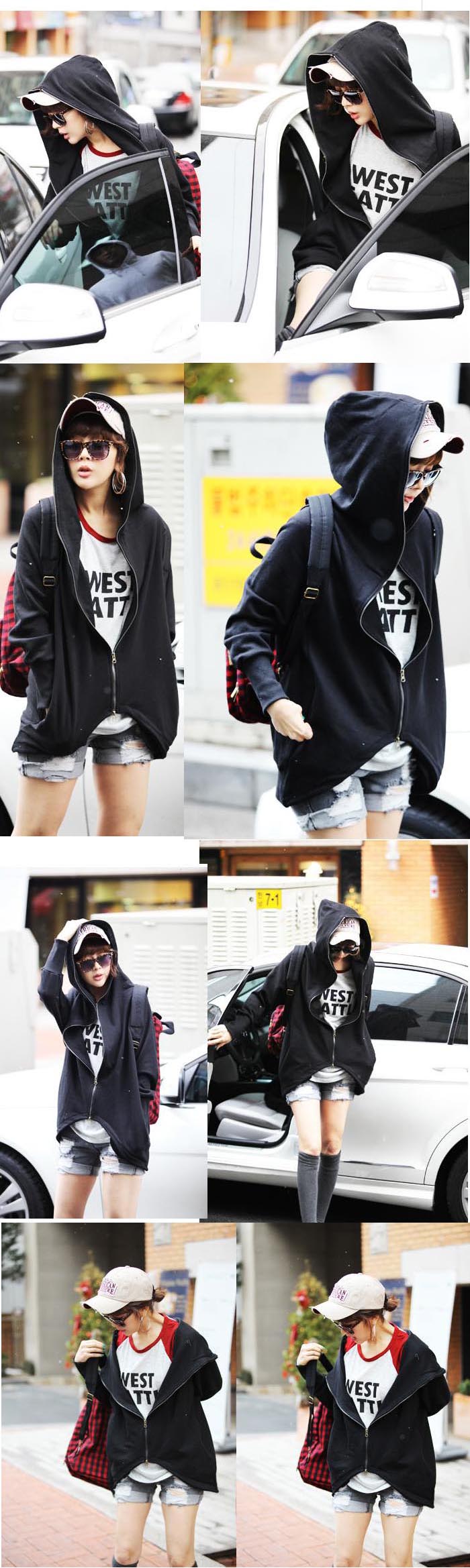 Amanda49 Concise School Style Zipper Irregularity Hem Long Sleeves Cotton Coat For Women |