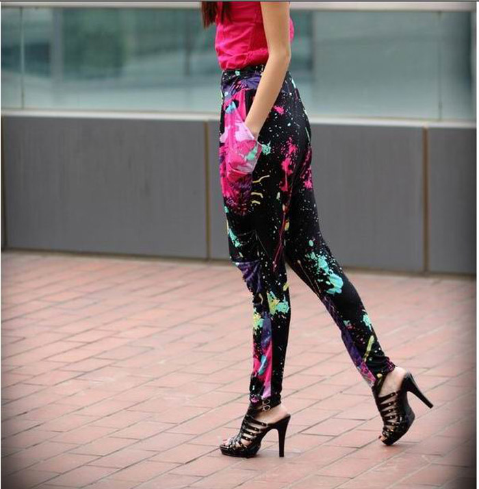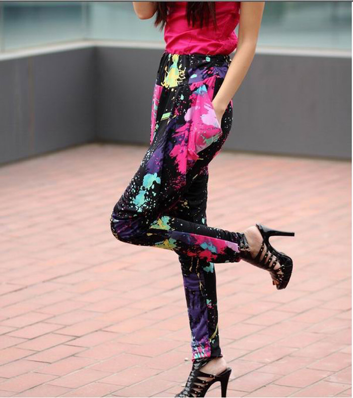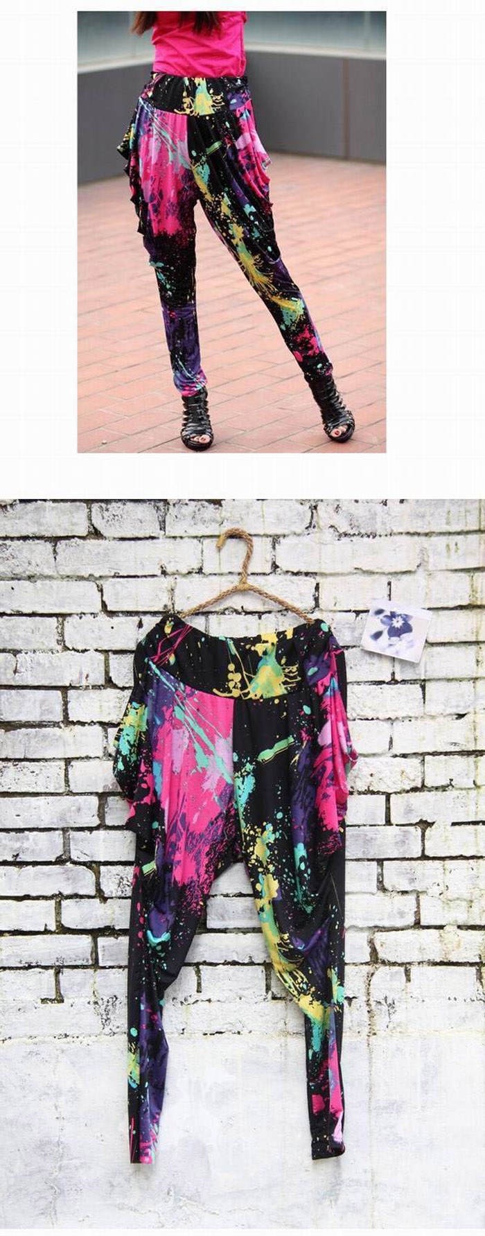 Amanda49 Cool and Refreshing Style Colorful Ink-Panting Harem Pants |