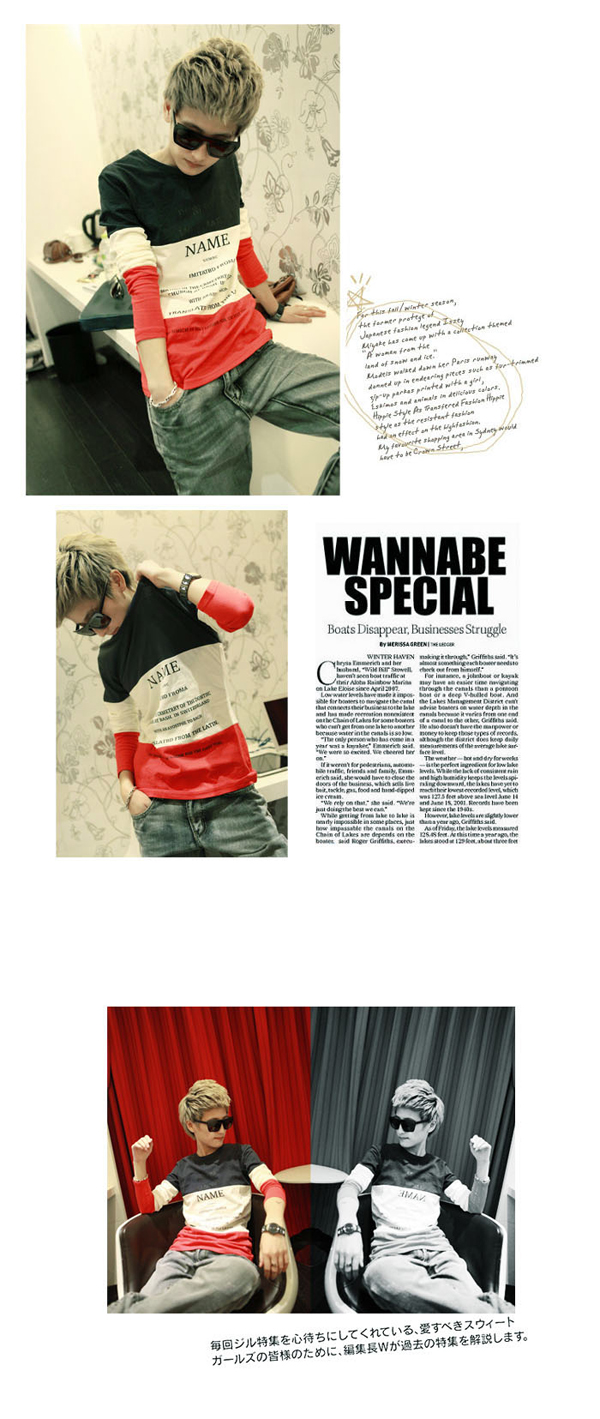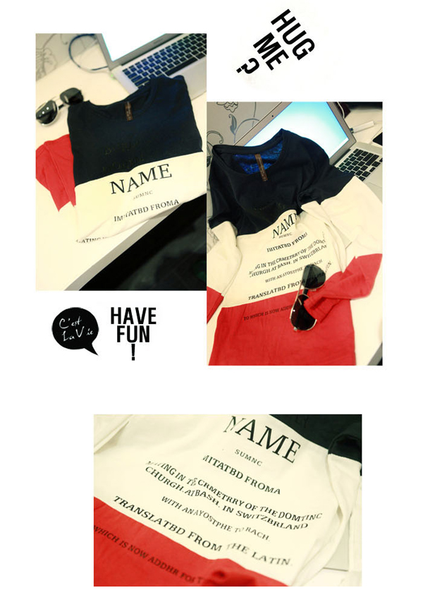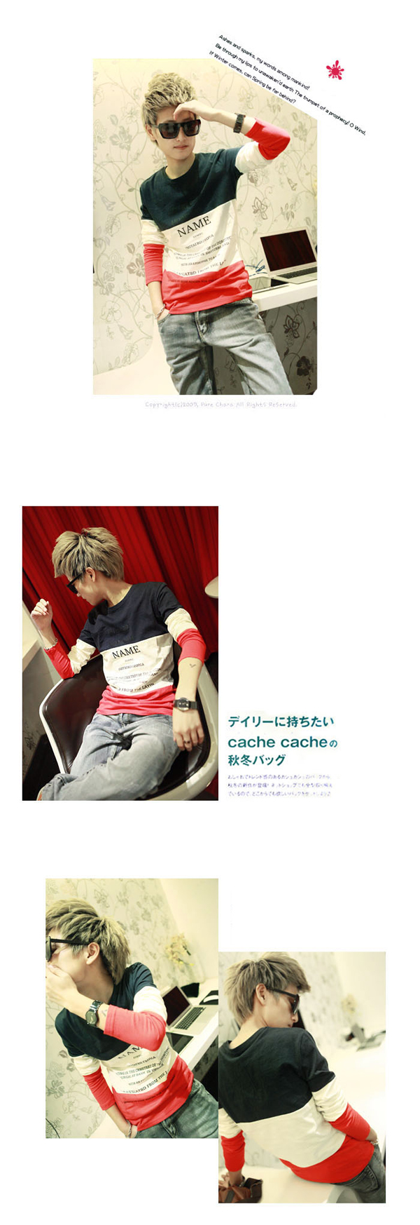 Amanda49 Cool Round Neckline Colormatching Letter Printed White Long Sleeves T-Shirt For Men |