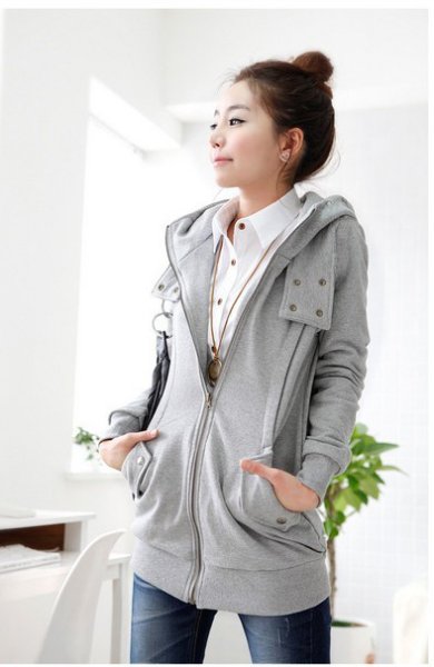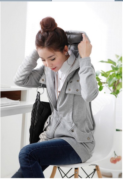 Amanda49 Corean Fashion and Casual Style Button Decorated Hooded Fleeces Coat For Female |