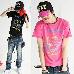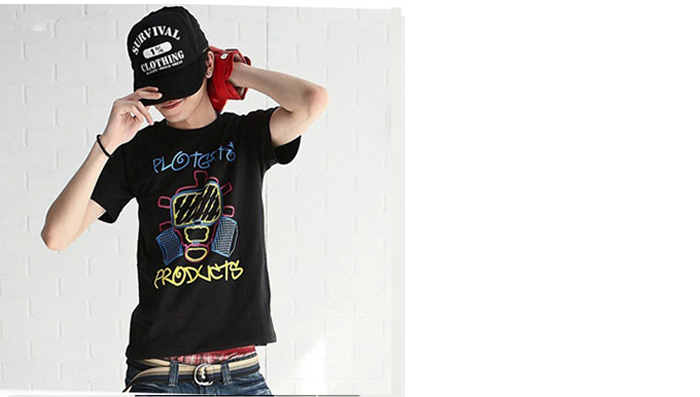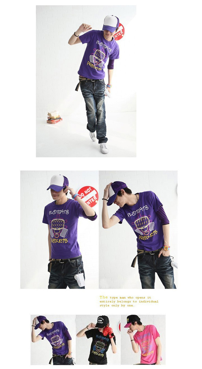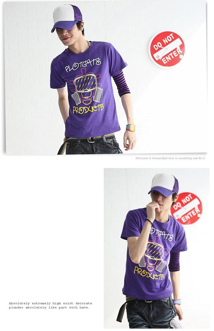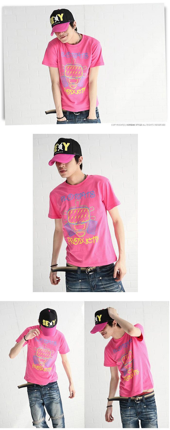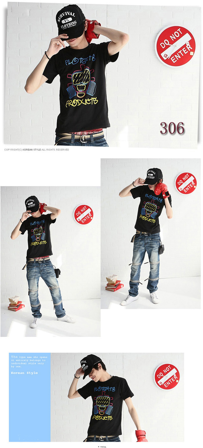 Amanda49 Corean Fashion and Casual Style Cartoon Pattern Decorated Cotta T-shirt For Man |