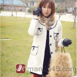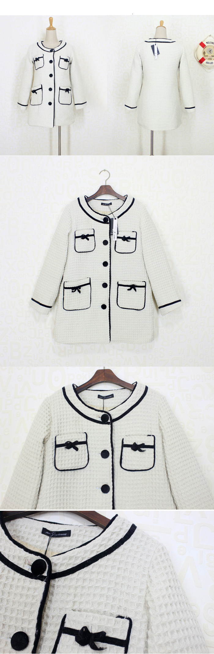 Amanda49 Cute and Charming Round Neckline Single-Breasted Many Pockets White Long Sleeves Coat For Women |