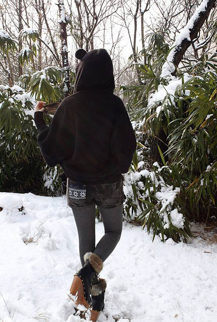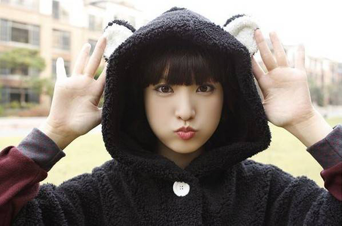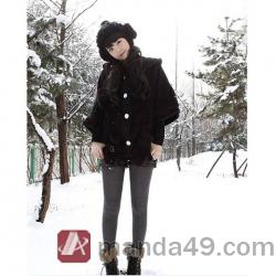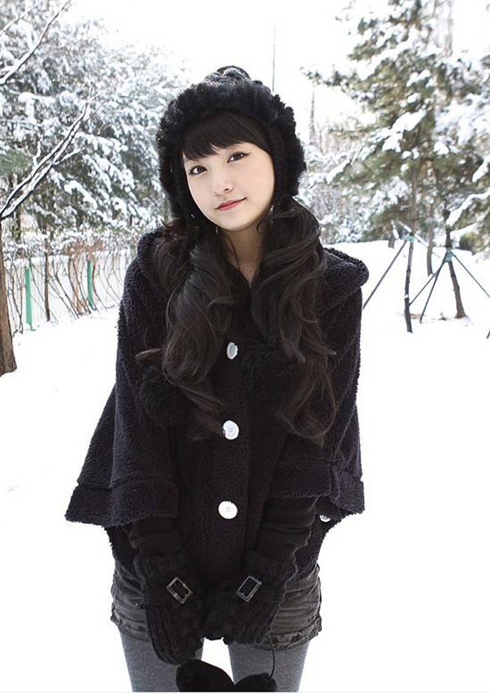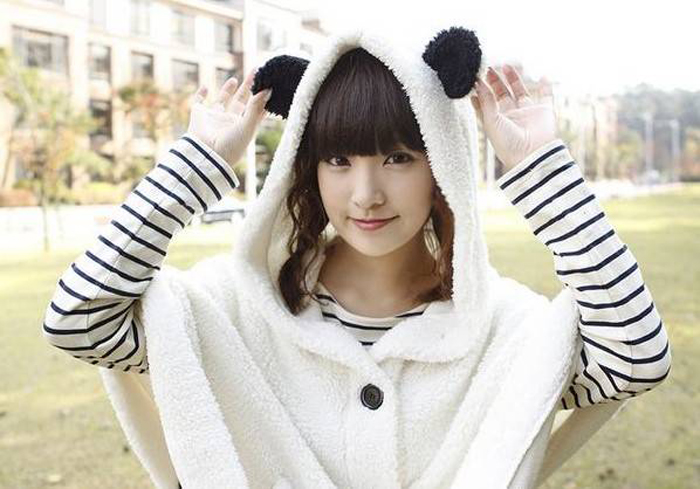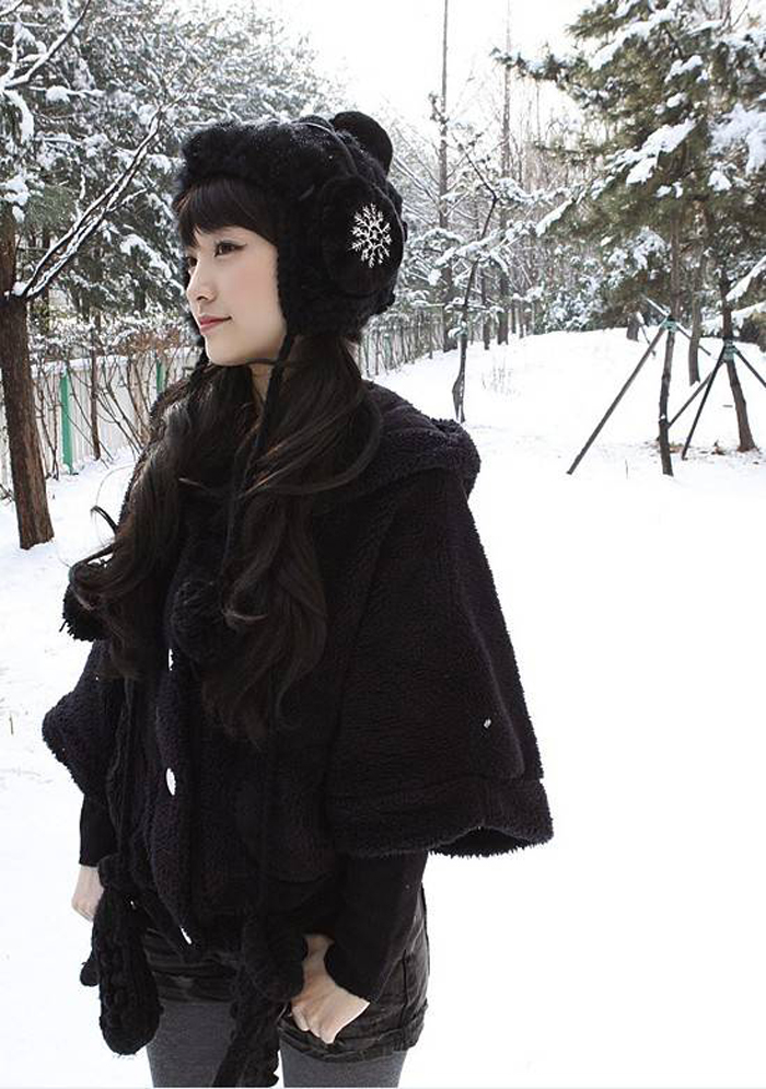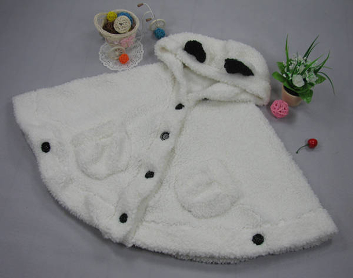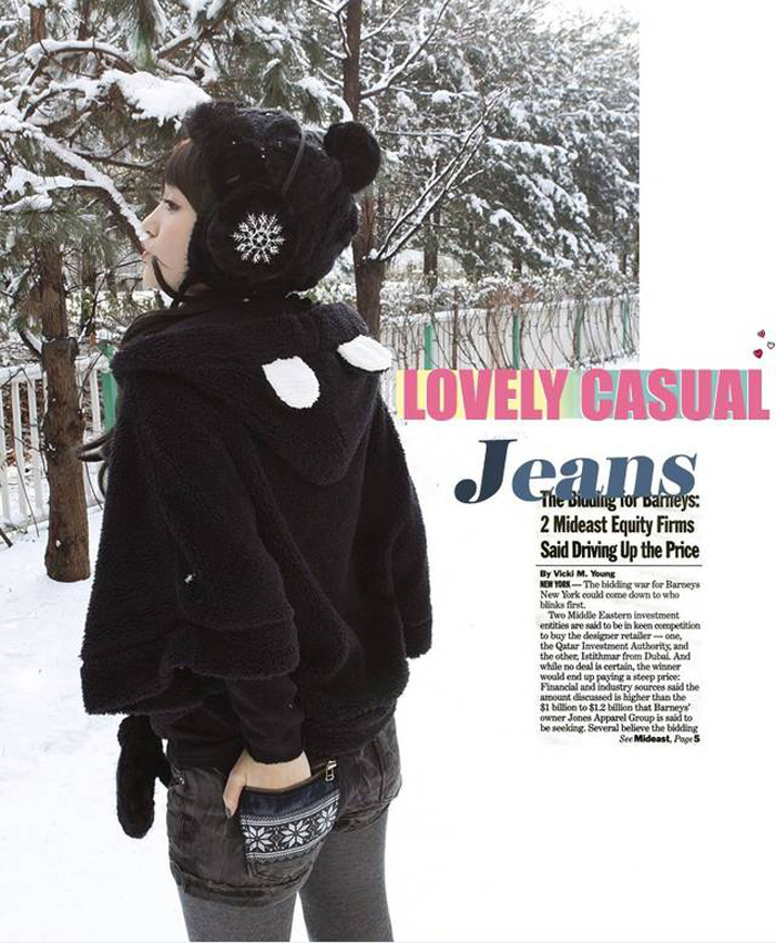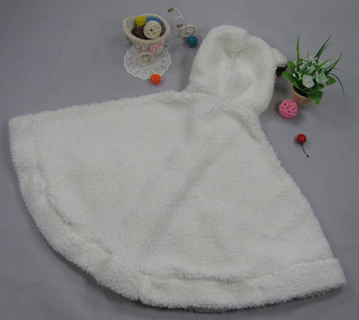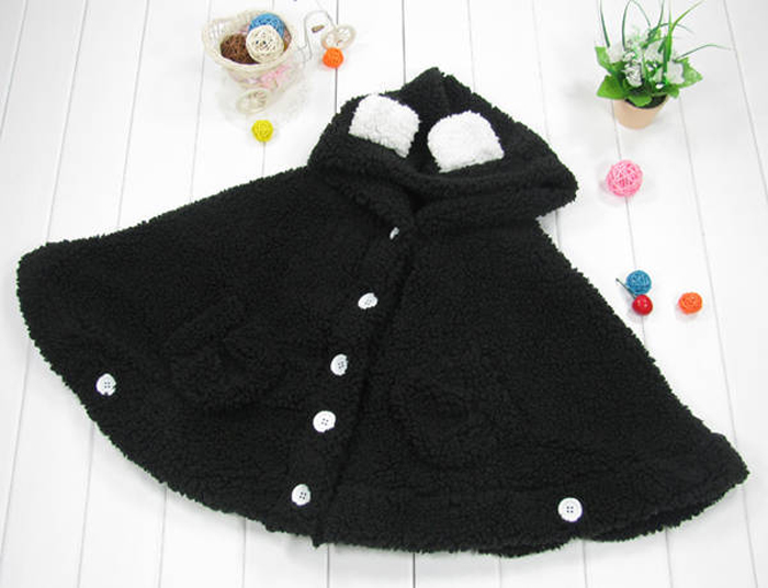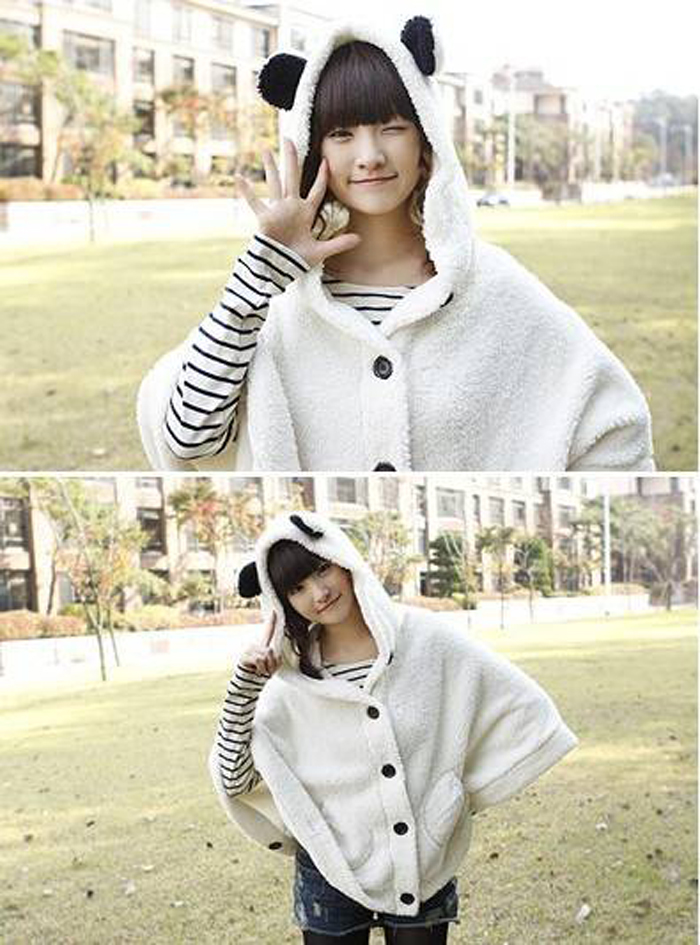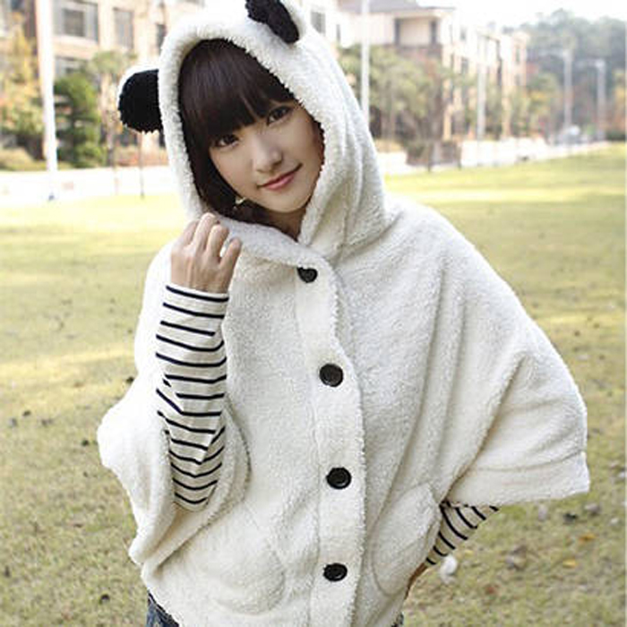 Amanda49 Cute Bear Design Bat-Wing Sleeves Radian Hem Fleece Hood Shawl For Women |