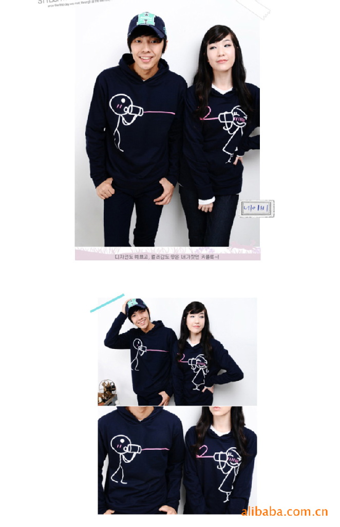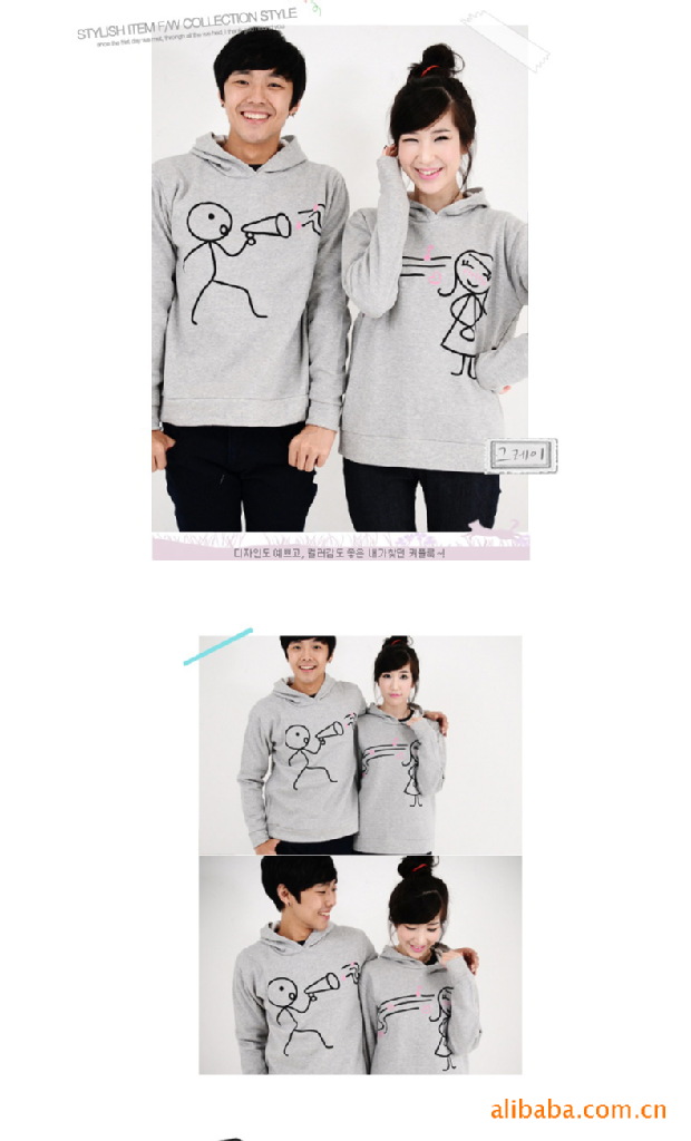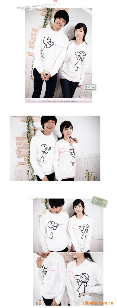 Amanda49 Cute Cartoon Lover Patterns Long Sleeve Hoodede Sweater--Lover's Clothes |