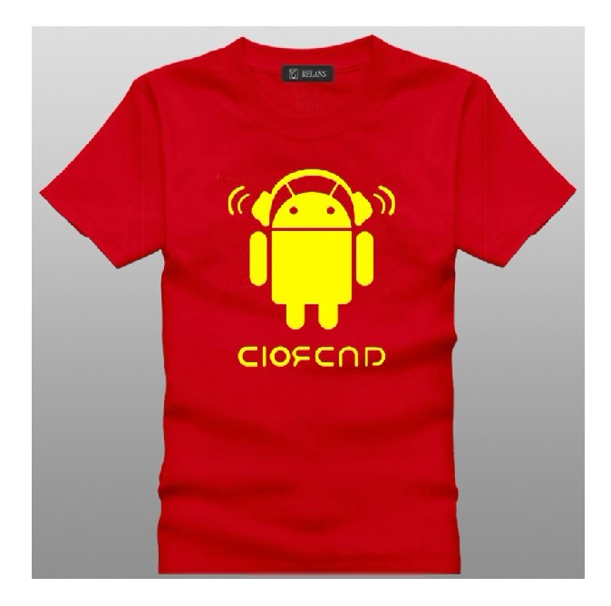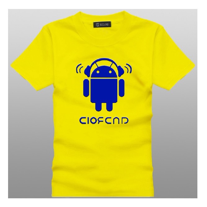 Amanda49 Cute Round Neckline Robot Printed Yellow Sleeves Cotton Fabric T-Shirt For Men |