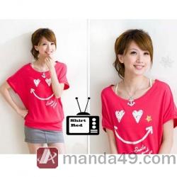 Amanda49 Cute Smile Round Neckline Cotton Red Short Sleeves Blouse--Women's Blouese |