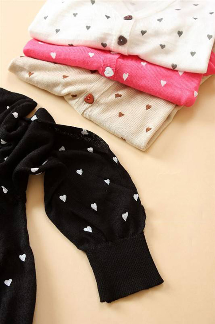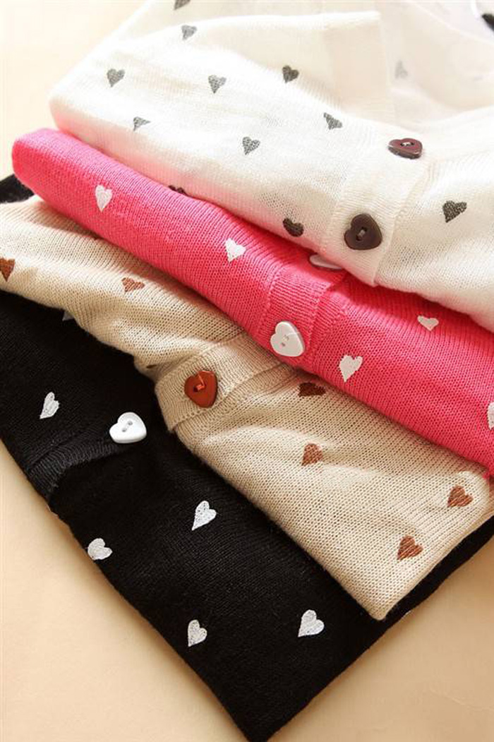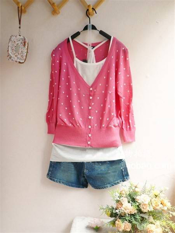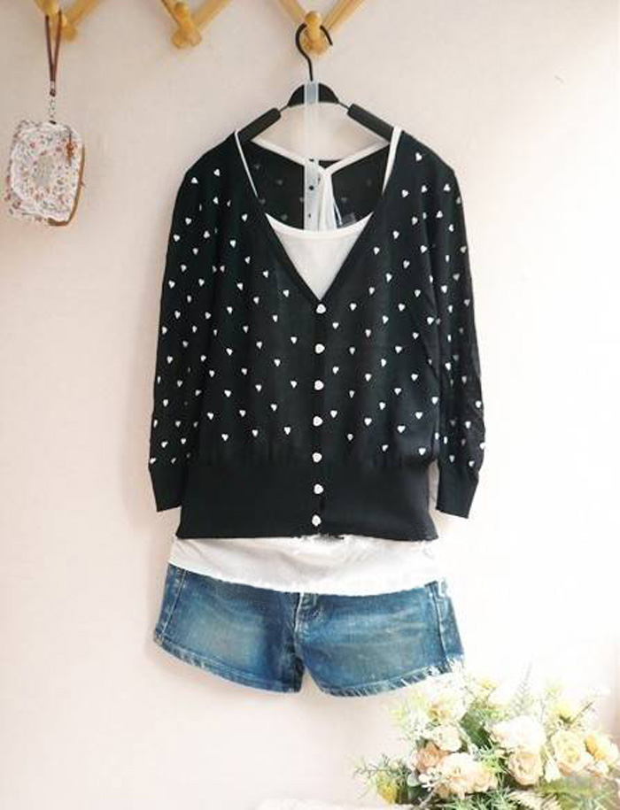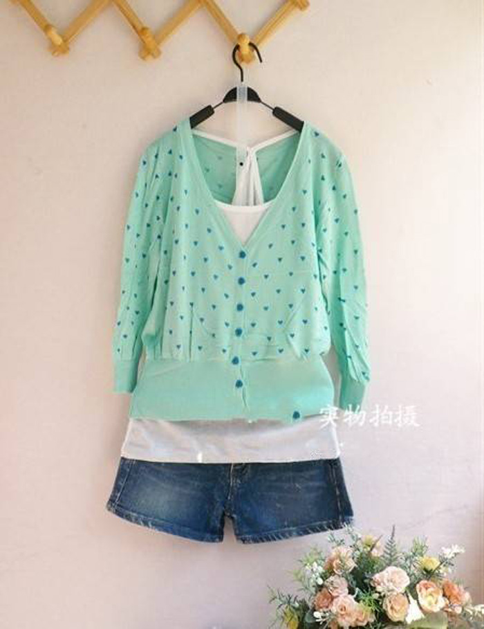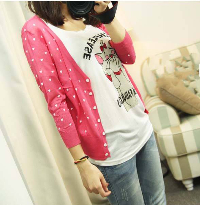 Amanda49 Cute V-Neck Heart Patterns Long Sleeves Elastic Hem Cotton+Silk Coat For Women |