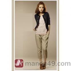 Amanda49 Delicate Round Neckline Design Black Cotton Half Sleeve Coat--Women's Coats |