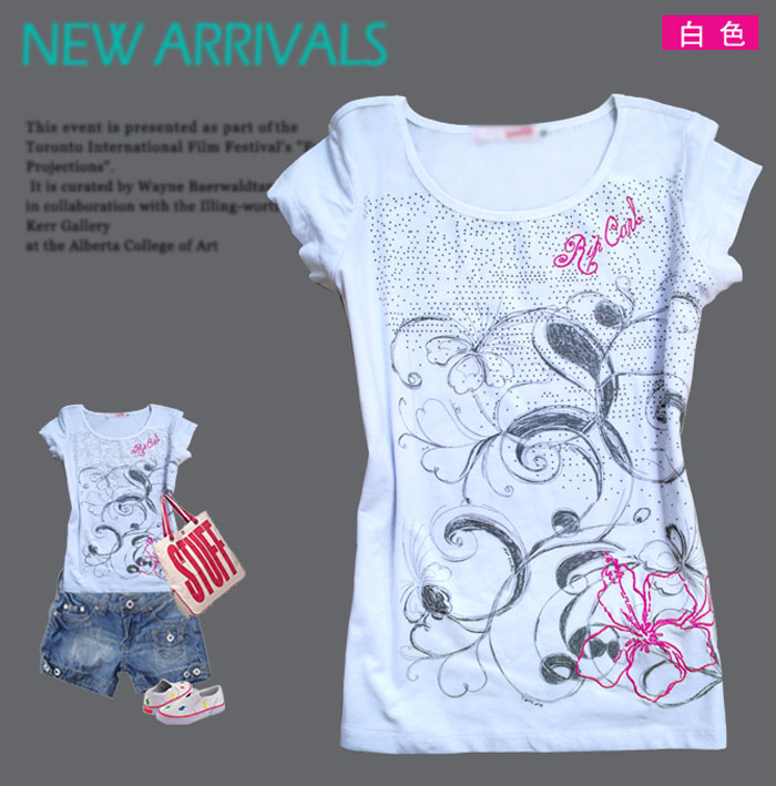 Amanda49 Delicate Round Neckline Drawing Patterns Short Sleeves T-Shirt For Women |