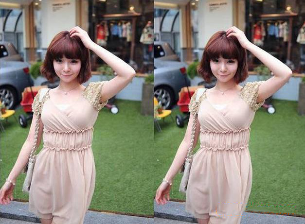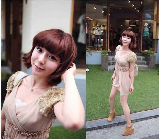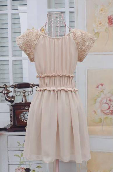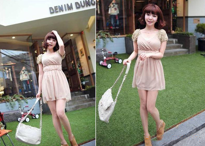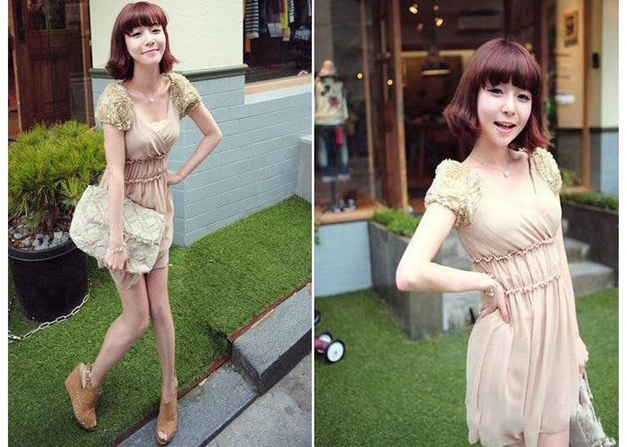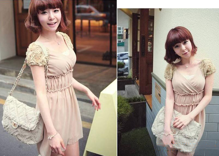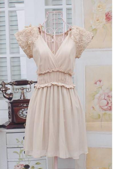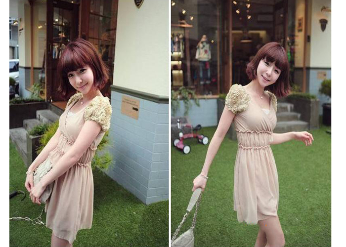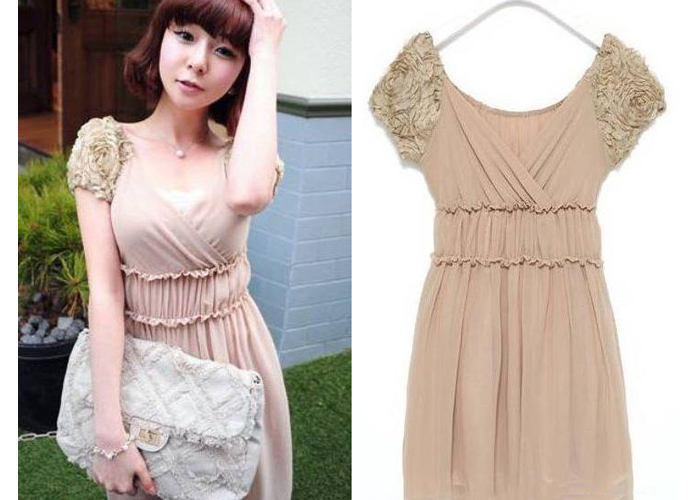 Amanda49 Delicate V-Neck Elastic Frill Waist Short Sleeves Chiffon Dress--Women's Dresses |