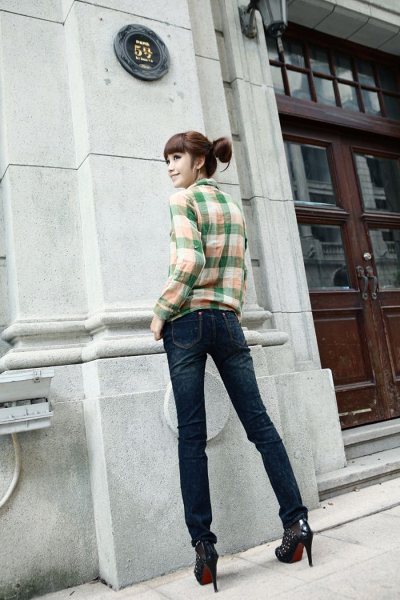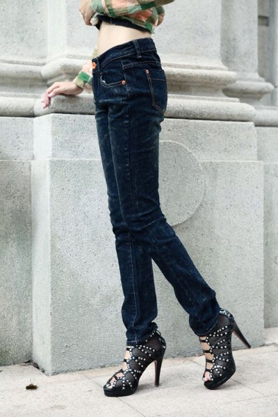 Amanda49 Elastic and Fitness Dark Blue Snow Pencil Jeans |